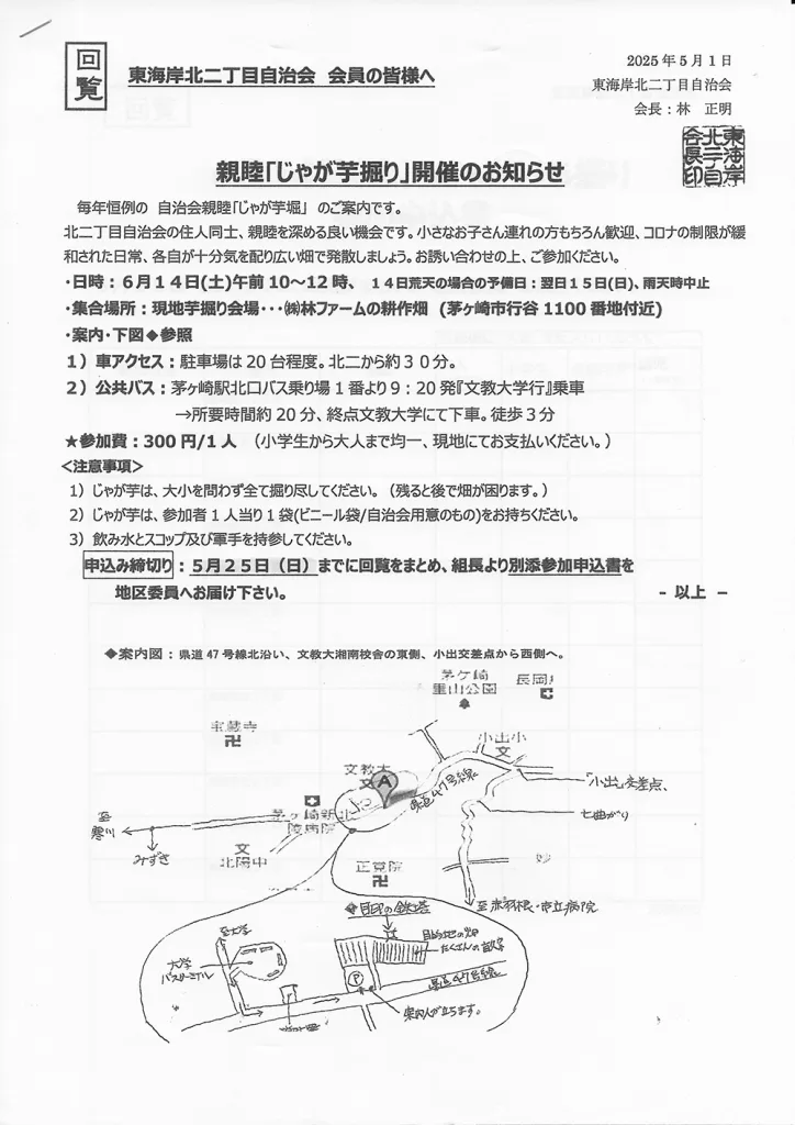 6月14日(土)親睦「じゃが芋堀」 開催のお知らせ