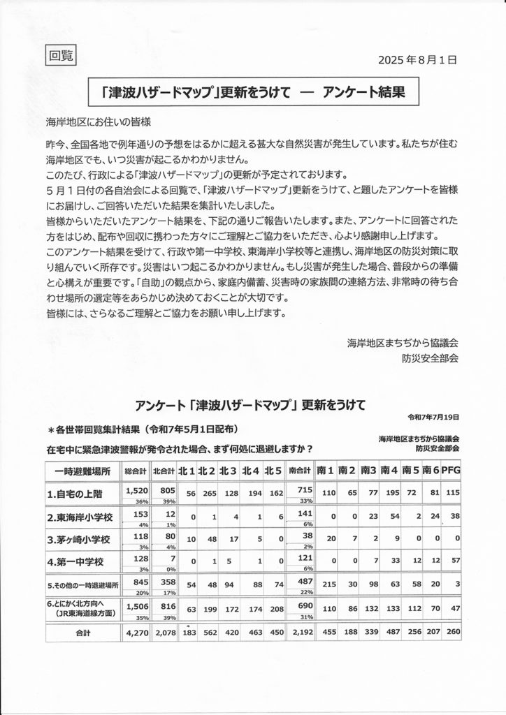 アンケート結果「津波ハザードマップ」更新をうけて