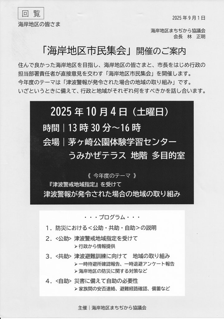 10月4日(土)「海岸地区市民集会」開催のご案内