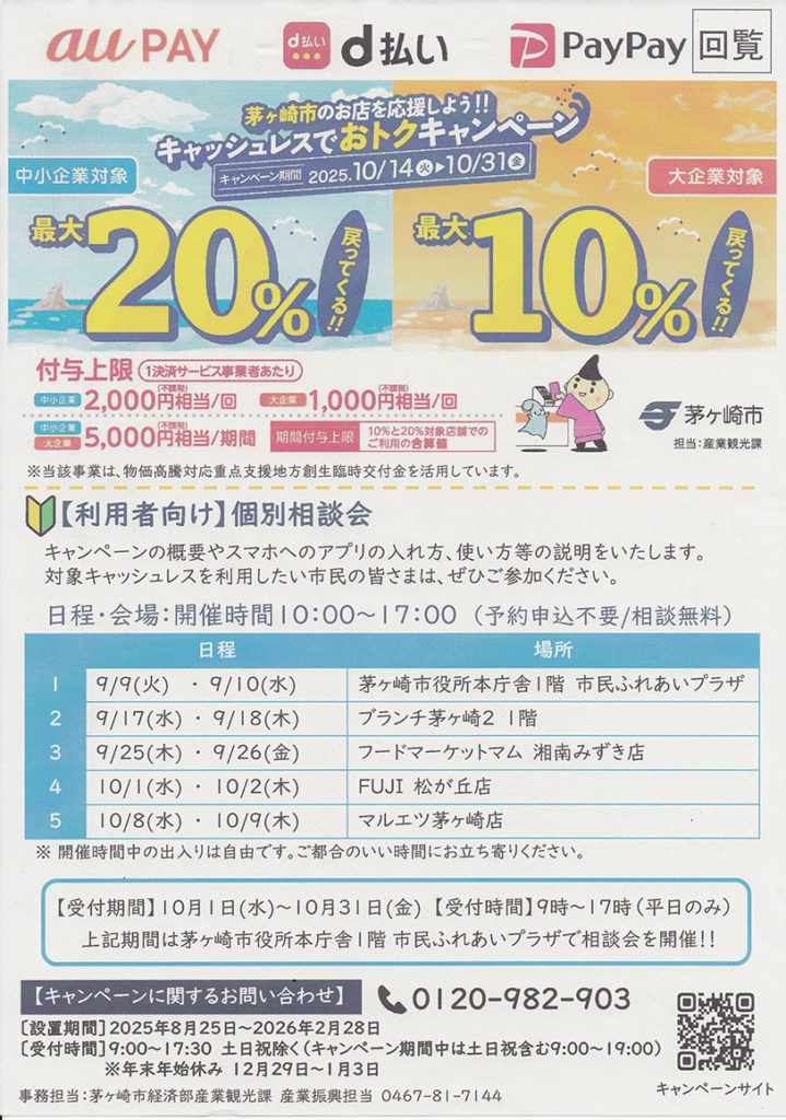 キャッシュレスでおトクキャンペーン 茅ヶ崎市でのお店を応援しよう!