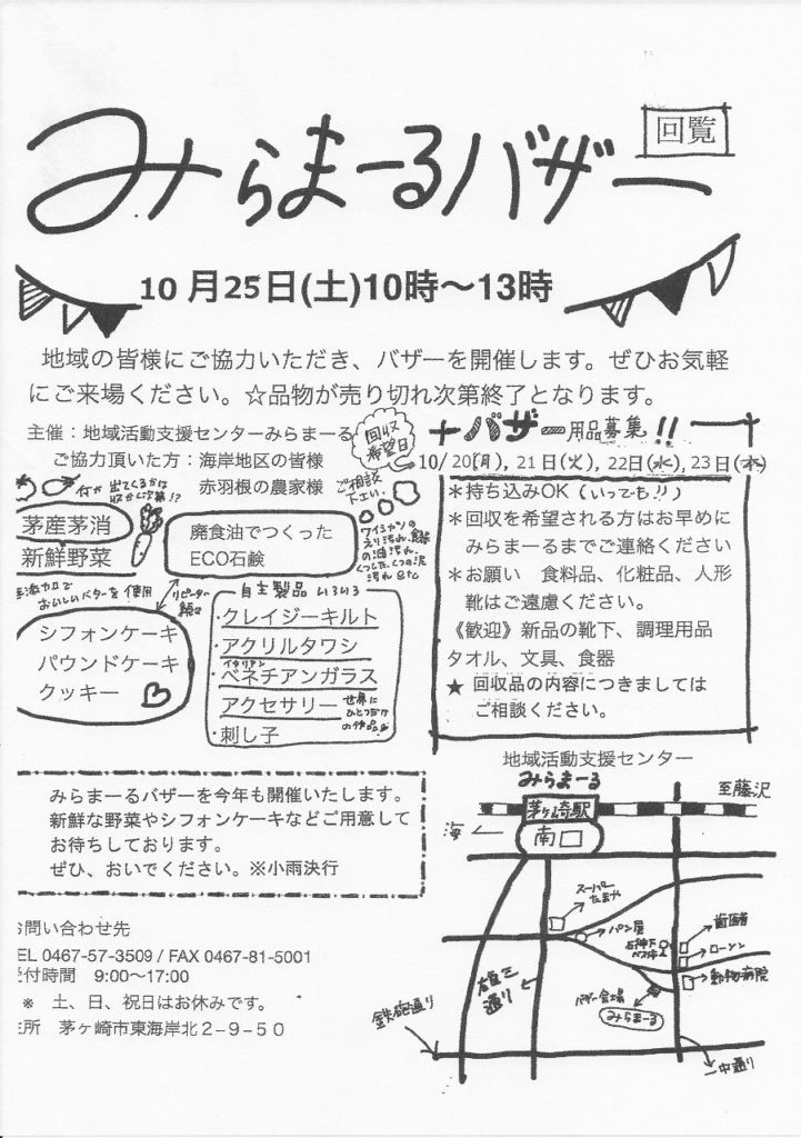 10月25日(土)みらまーるバザー