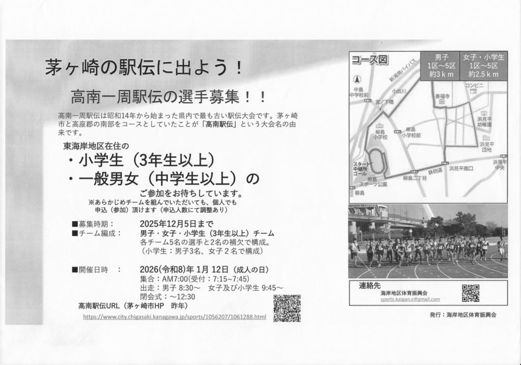 茅ヶ崎の駅伝に出よう!高南一周駅伝の選手募集!!